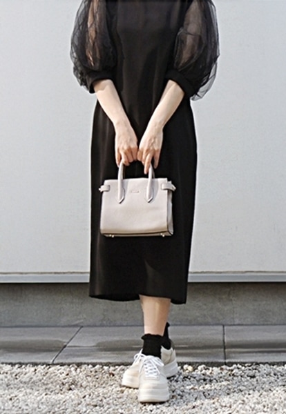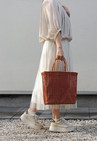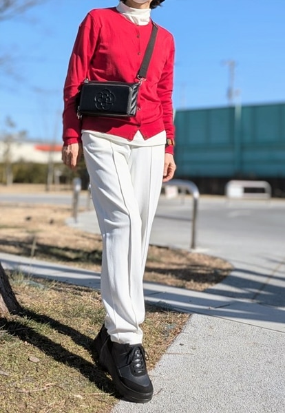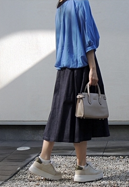 AKAISHIの厚底スニーカーはどのシーンにも合わせやすく、カジュアルから上品なスタイルまで幅広く楽しめるデザインです。