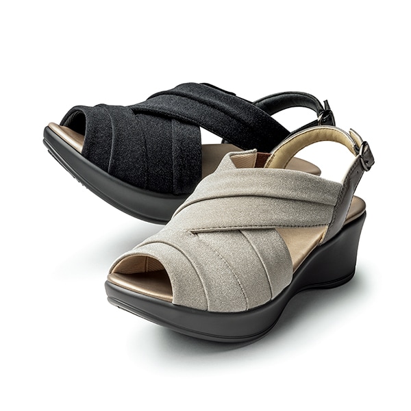つま先が圧迫しにくい「オブリークトゥ」タイプのものや、つま先にゆとりがある靴がおすすめです。甲を紐やベルトで調整できるタイプの靴も、母趾への圧迫を緩和できるのでおすすめです。