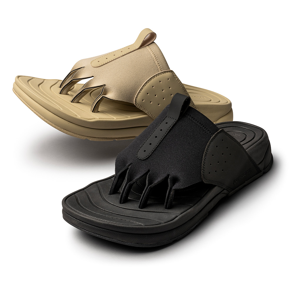 母趾外転筋をサポートするインソールが、曲がった母趾をやさしく補正しながら、歩行時に母趾と足裏にかかる負担を軽減します。