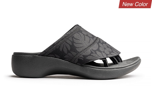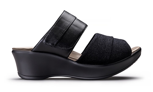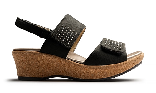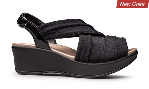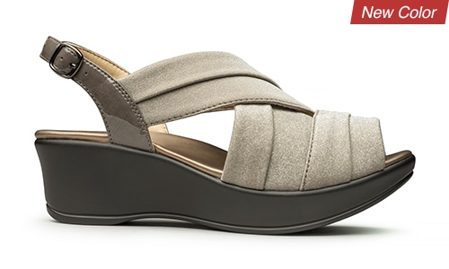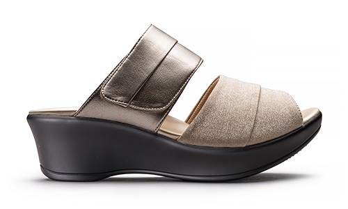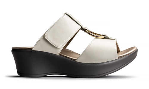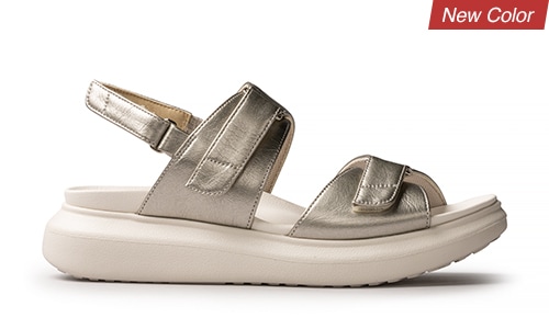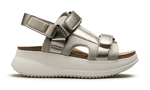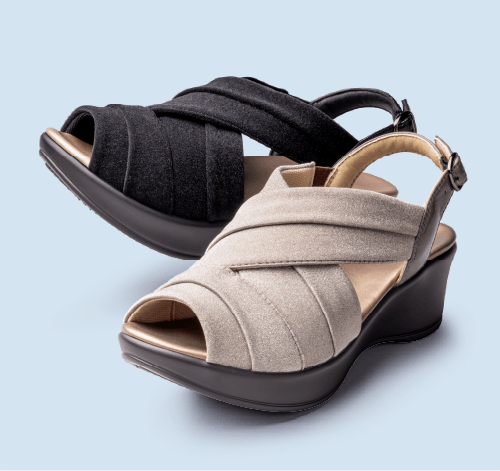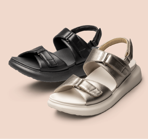 足もと華やぐ異素材ストラップがやさしく足を包み込む