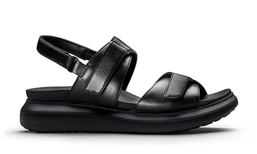 ソフト生地とクロスのベルトで心地よく足を包み込む