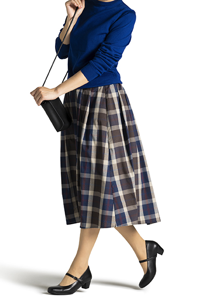 安定歩行のカギは体重の1.5倍もの衝撃がかかる一歩一歩を、ぶれたり捻れたりすることなく受け止めることにあります。足を支える面積が一般的なパンプスより広く、ヒールの幅も大きいため重心が安定します。