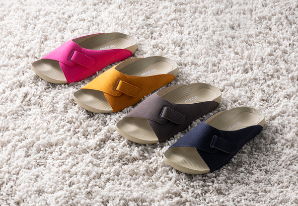 甲部のベルトで調整が可能なので、甲高・幅広足・むくんだ足にも最適なフィット感で履くことが可能。家事で動いてもずれません。