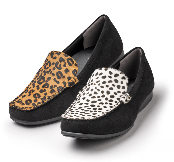 アッパー甲部にはハラコ風に仕上げた本革で質感のある風合いに。 -