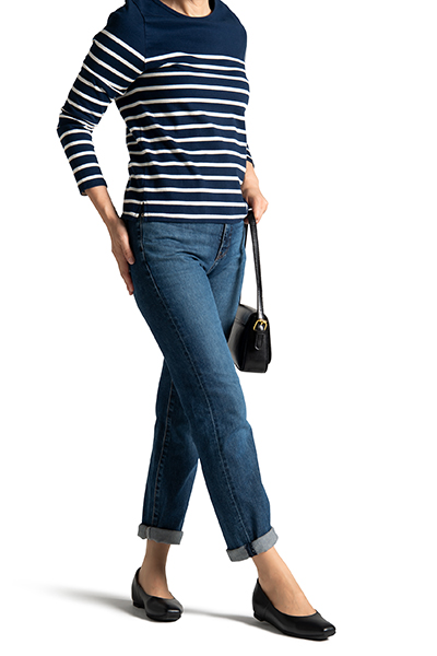 インヒール構造により、クッション性や機能は従来のフラットシューズそのままに、見た目はすっきりとした薄型デザインに。日常のおしゃれからお仕事まで、さまざまなシーンで快適に履きこなせます。
