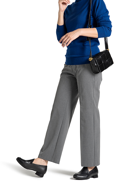 歩くたびに足の動きにしっかりフィットして自然に曲がるから、足運びがスムーズ。さらに、かかとが脱げにくいので安心です。足を包み込む仕上がりで快適な歩きやすさを実現しました。