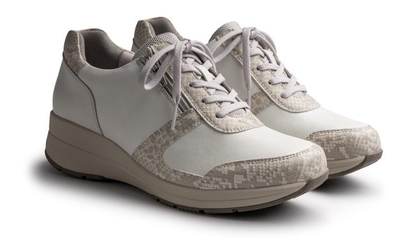 上品なパイソン柄が、機能性とファッション性を両立させた一足です。