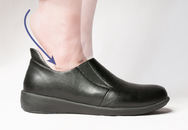 脱ぎ履きが簡単なかかと形状で、足をスポッと入れるだけ。手を使わずに履けるので、かがむ必要もありません。