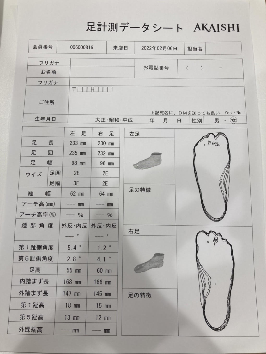 足の計測をすると、ご自身の足のサイズにびっくりされる方が多くいらっしゃいます。