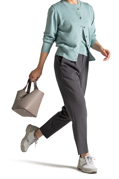 ヒール差高は足への荷重配分を重視した1cm。しっかり踵に体重が乗ることで安定した歩行ができます。前足部にかかる荷重の割合も少ないので、中足骨骨頭痛、タコ・魚の目などの足指の付け根にお悩みをお持ちの方にもおすすめです。