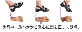 かかと部分が内側に沈み込むことで重心をガイドします。さらに、歩行時の重心移動も補正して、正しい歩行姿勢をサポート。