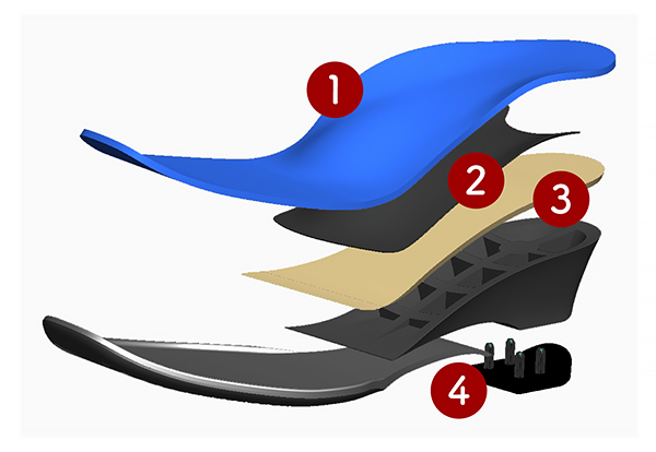 歩行時の衝撃を分散吸収、左右のブレを防止