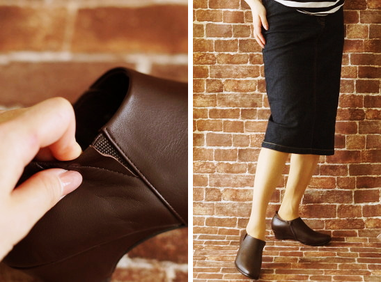 厚手のタイツを履いた時もファスナーでシュッと足入れできます。