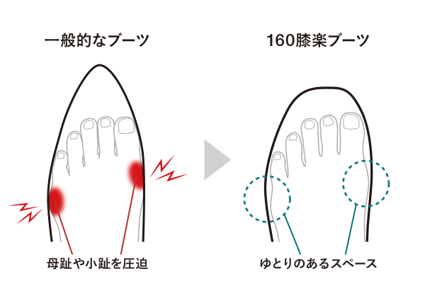 • ワイドなつま先形状は、母趾や小趾への圧迫・摩擦を防ぎます。
