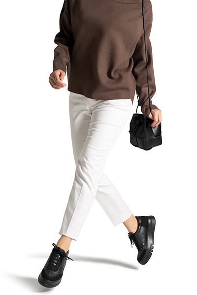 かかとからつま先への重心が移動しやすい、足の動きに沿った設計でなめらかな歩き心地を実現します。