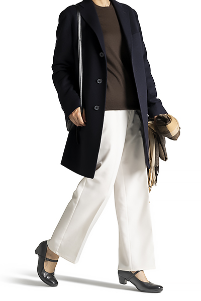 安定歩行のカギは体重の1.5倍もの衝撃がかかる一歩一歩を、ぶれたり捻れたりすることなく受け止めることにあります。足を支える面積が一般的なパンプスより広く、ヒールの幅も大きいため重心が安定します。