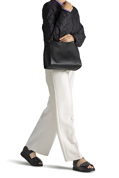 衝撃を吸収する高反発クッションと、つま先が反り上がったソール形状を組み合わせることで、スニーカーのような軽快感を生み出し、安定した歩行をサポートします。