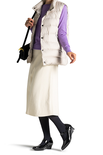 安定歩行のカギは体重の1.5倍もの衝撃がかかる一歩一歩を、ぶれたり捻れたりすることなく受け止めることにあります。足を支える面積が一般的なパンプスより広く、ヒールの幅も大きいため重心が安定します。