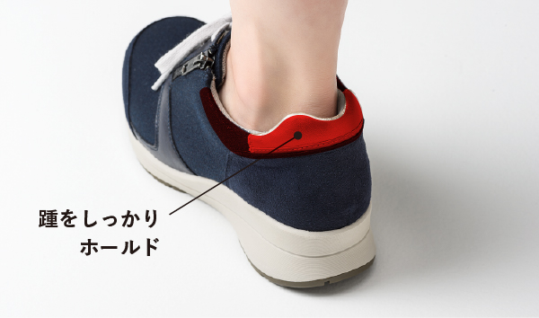 かかと全体を包んでやさしく保護するパッド付き。かかと脱げや靴ずれを気にせずに歩けます。※写真は同シリーズの商品です。