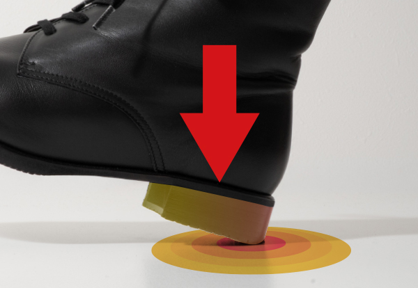 ヒールの素材には柔らかくて弾力のあるEVAを使用し、ローヒールにありがちなかかとへの荷重や突き上げを和らげます。また、ヒールも交換可能です。