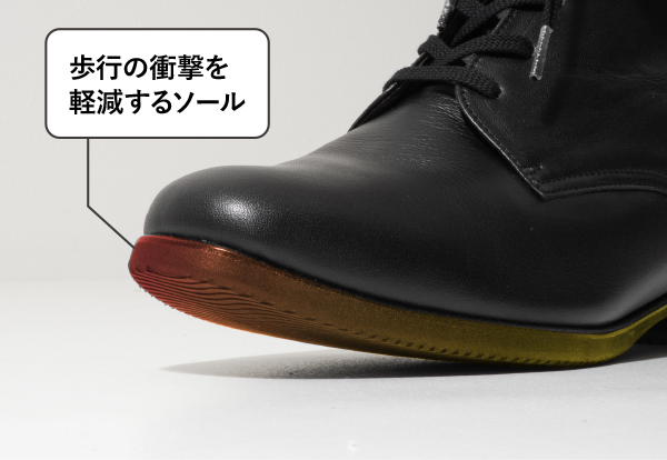 厚めのEVAソールはクッション性が高く、歩行時の衝撃を軽減します。また、厚く見えないような意匠にすることで、見た目と履き心地両方を実現しています。