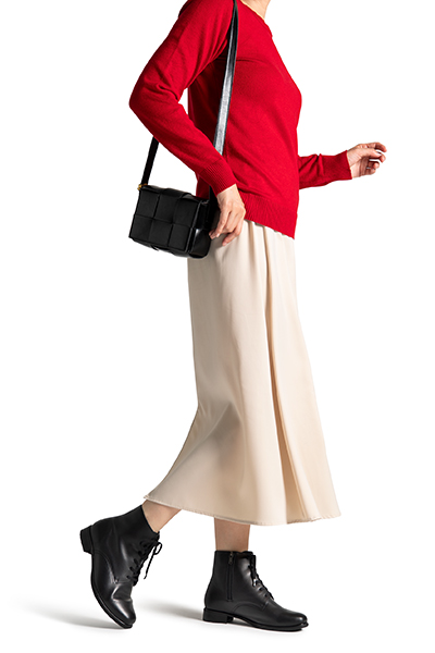 熟練職人が、一足一足丁寧に仕上げています。袋のように足を包み込み屈曲性の良い『ボロネーゼ製法』を採用しているため、歩行の動きに合わせて、靴が正しい位置で曲がるから、足運びはとてもなめらかです。