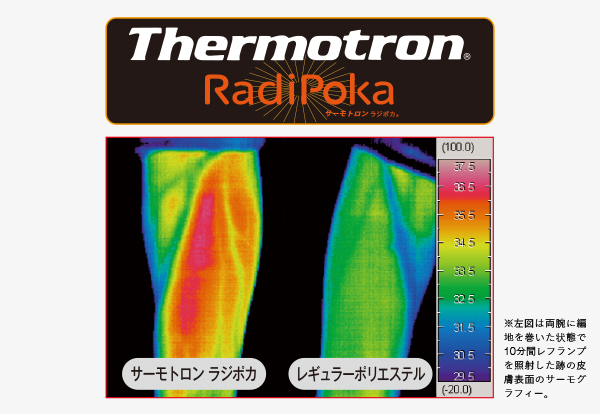 高い保温効果を発揮する素材で、気温が低い時でも、快適なあたたかさを提供します。※「サーモトロン ラジポカ」、「Thermotron RadiPoka/サーモトロン ラジポカ」はユニチカ株式会社の登録商標です。