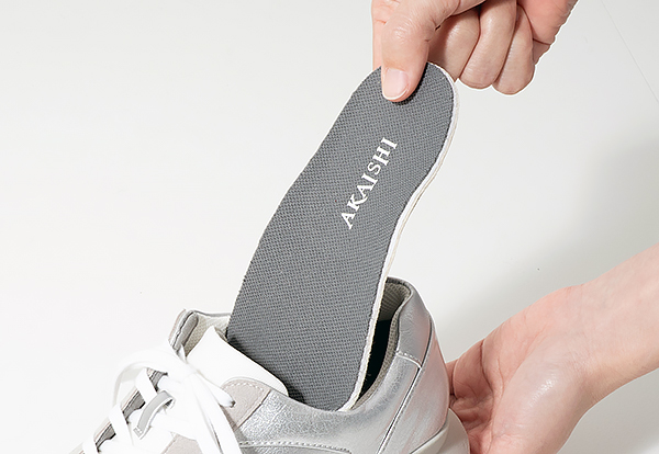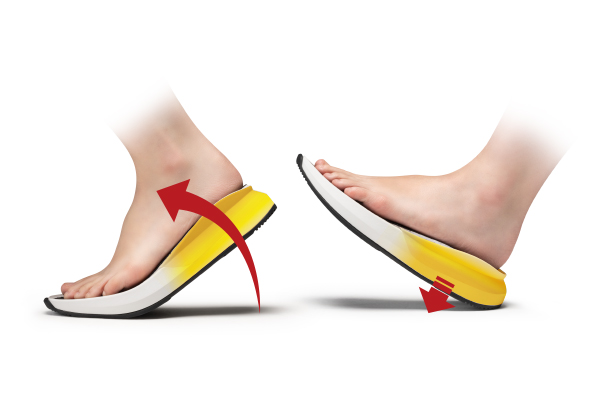 20年以上の歩行研究から生まれた独自ソール。転がるように体重が移動するため、母趾の付け根に力を入れずに自然と前へ。母趾まわりに負担を感じる方でも歩きやすい構造です。