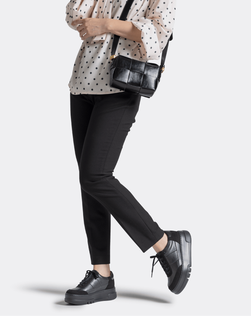 AKAISHIのスニーカーは一駅歩いても足裏が疲れず快適。アフター5にも履いていけるシンプルなデザイン。